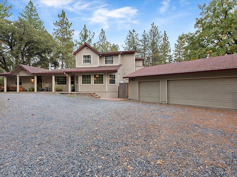 Charming custom home nestled in the heart of Colfax! Instantly fall in love with the private wooded setting and inviting covered front porch. Inside, soaring wood-beamed ceilings and large windows fill the home with natural light and forest views from nearly every room. The spacious living room features a stunning stone fireplace and hearth, while the formal dining area is perfect for hosting family and friends. The gourmet kitchen showcases beautifully designed cabinetry, a gas cooktop, and a built-in oven. The primary retreat offers a spa-like bath with an oversized custom shower/tub combo, and the secondary bedrooms provide space and flexibility. Outdoor living shines with multiple entertaining areas, space for animals, and a detached 3-car garage with workshopideal for hobbies or storing toys. Enjoy the peace of country living while being just minutes from shopping, trails, lakes, and parks. Previously a high-performing Airbnb, this property offers incredible versatility for full-time living, vacation use, or investment!
