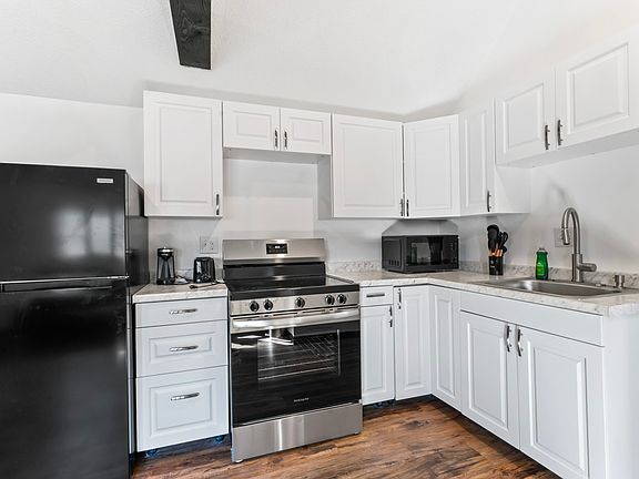 Off-street parkingCouch and dining setRemodeled kitchenStainless steel appliancesKitchen essentials