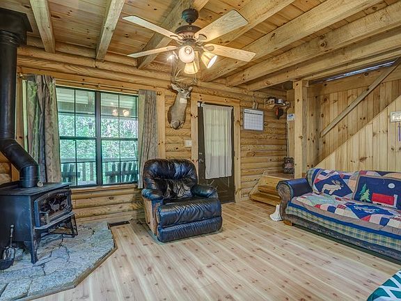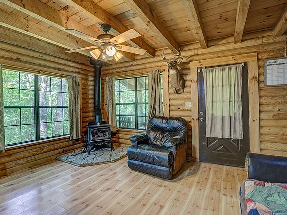 Whether you are looking for a perfect getaway or short term rental this beautiful secluded log cabin 2-bedroom, 1-bathroom on over 17 acres of land is it! This home features a loft space, a large covered front porch, and a back deck. Surrounded by mature trees, heavy woods, a creek, and a pond, this property is a wildlife enthusiast's dream come true. Perfect for hunting or simply enjoying the serenity of the great outdoors. Schedule a showing today!