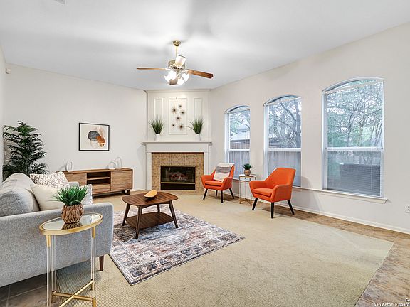 WELCOME to 522 Roble Vista where you are greeted with DRAMATIC two-story brick columns and a charming front patio! Inside you will find soaring ceilings and an abundance of natural light! The island kitchen features 42" cabinets, granite counters, sleek black appliances and a HUGE walk-in pantry! Step out to the private backyard where you will find a shaded wood deck that is perfect for the next barbeque, a charming flagstone walkway and a full sprinkler system to keep it all beautiful! The spacious family room features a cozy wood burning fireplace! The formal living area can also function as a study and the formal dining space is ready for those holiday dinners! The utility room has a sink and PLENTY of built-in cabinets! The primary suite is made for pampering! The bathroom features a garden tub for soaking the stress away, an XL walk-in shower, dual vanities w/ knee space, a linen closet and TWO walk-in closets with custom built-ins! There are three spacious secondary bedrooms up each with UNBELIEVABLE closet space! Don't like maintenance? That is not a problem here! The roof was replaced in 2020 and the water heater was replaced in March of 2025! Exemplary NEISD Schools - Stone Oak Elementary, Barbara Bush Middle School and Reagan High School! The Hills at Sonterra is a gated community with a community pool, park & a clubhouse! This one is absolutely a MUST SEE!