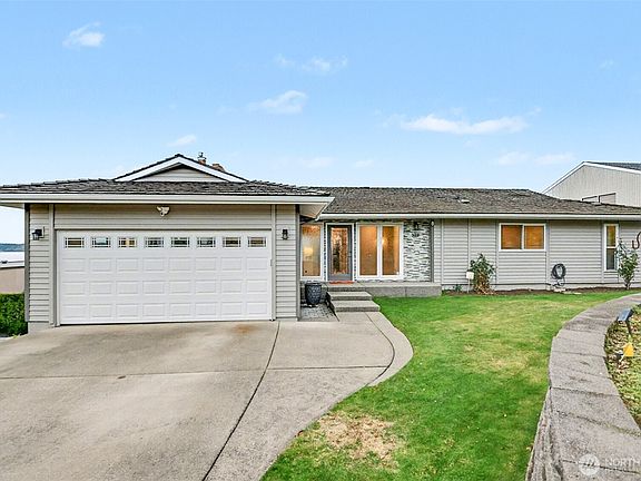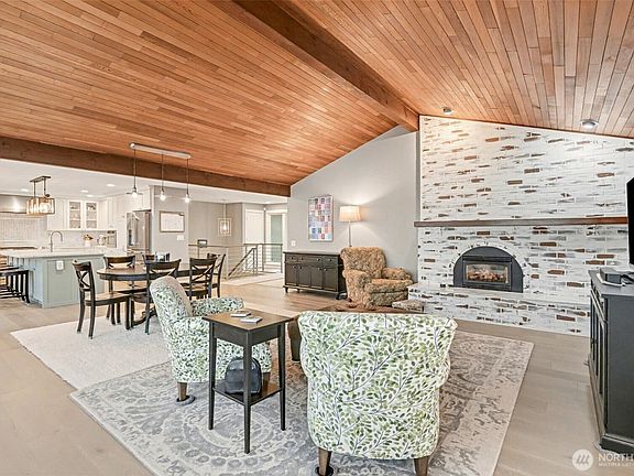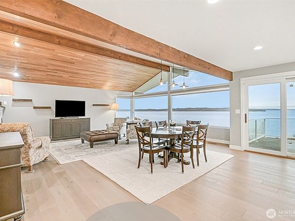 Completely reimagined in 2018 with high-end finishes, this 3340 sf, 5-bedroom home sits on a rare 19,000 sf lot with stunning westerly views of the Sound and Olympic Mountains—no homes in front, just endless beauty. Two luxurious primary suites on the main level plus three bedrooms below offer flexible living. Every detail was thoughtfully upgraded: relocated kitchen with quartz island and marble backsplash, dual-sink master bath with heated floors and zero-threshold shower, new flooring, lighting, fixtures, and expanded entry. Basement features LVT floors, upgraded bath, laundry, and custom cabinetry. Exterior enhancements include stonework, lighting, and extended entry. A rare blend of privacy, craftsmanship, and panoramic serenity.
