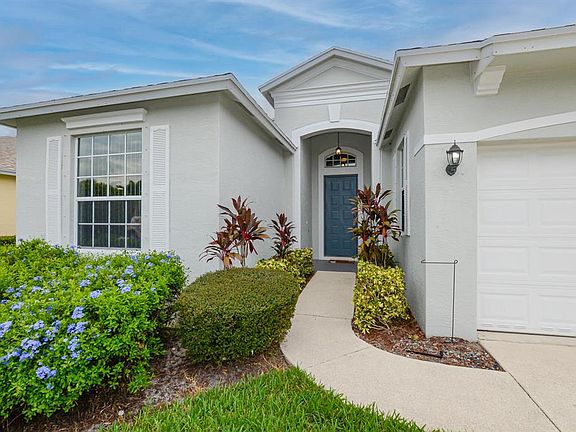 Gorgeous 2 bedroom + Den (can be used as 3rd Bedroom) 2 bath, 2 car garage home is ready to move in to today! The covered entry leads to foyer welcomes you into the split floor plan with large family room. As you enter the home, to the left is the guest bedroom and works as a private suite with adjacent 2nd full bathroom. Master bedroom boasts large soaking tub, separate shower and dual vanities. Tile and laminate flooring throughout the home. The eat in kitchen is light and bright with a window and sliding glass doors leading to the patio. From the family room and kitchen with an eat in kitchen you will be with stunned with long lake views. Plenty of space for a formal dining room. Enjoy breathtaking sunsets from the screened in back patio. Come see your new home today!