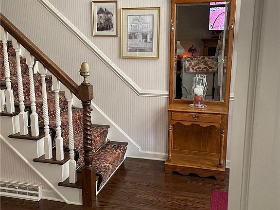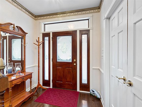 Rear fenced yardSeparate pantryOrnamental fireplaceBow windowLaundry chuteFormal dining roomSpacious entry