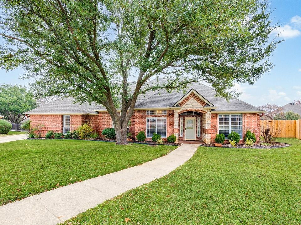 Fabulous one story home with a bonus room up on beautifully landscaped cul de sac lot with mature trees in the heart of Keller. Wonderful floor plan with 3 bedrooms, 3 baths and a study. Bonus room set as media room. Hardwood floors, stainless steel appliances, plantation shutters, custom woodwork, open floor plan light and bright. Wonderful kitchen with oversized island for food prep and lots of cabinets.Primary bedroom features a bay window and door to patio. Spacious laundry room with pantry, built in desk, cabinets and a sink. Outdoor living area with fireplace. Private, pool size backyard that is shaded in the afternoon. Storage shed for lawn equipment. Side entry oversized 3 car garage with room for additional parking. Centrally located within Keller, minutes from shops, restaurants, city parks, and award winning schools. Roof replaced 2018, fence replaced 2022.No HOA.