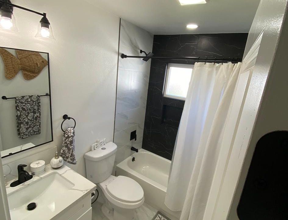Shared bathroom with one quiet roommate (rainfall shower head)