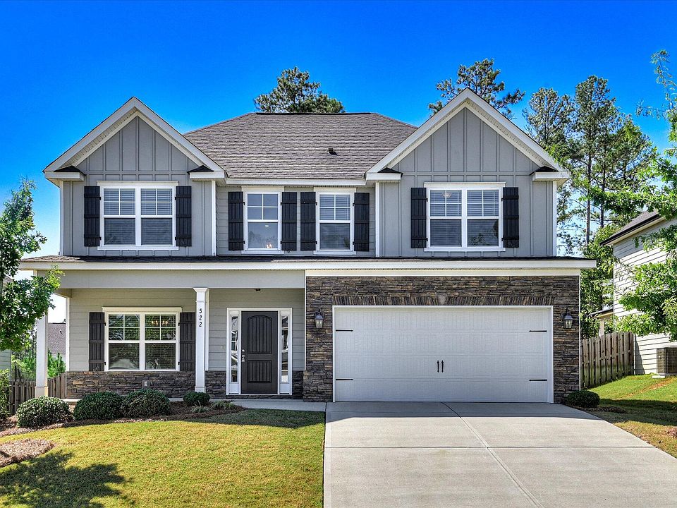 WELCOME HOME to this immaculate four bedroom, Three Full Bath home in beautiful Whispering Pines neighborhood! Open floorplan with an eat in kitchen featuring GE stainless appliances and granite countertops, a formal dining room with coffered ceilings, great room with gas log fireplace, guest bedroom downstairs with a full bath. Upstairs you will find a generous Owner suite with sitting area, ensuite bath with separate tiled shower, soaking tub, dual vanities and a huge walk in closet, two additional bedrooms and another full bath, and a huge room or fifth bedroom with barn doors! Outside, enjoy the screened in porch with a stacked stone wood burning fireplace! Neighborhood amenities include 25 meter resort style pool, playground, miles of walking trails, sidewalks and street lights.