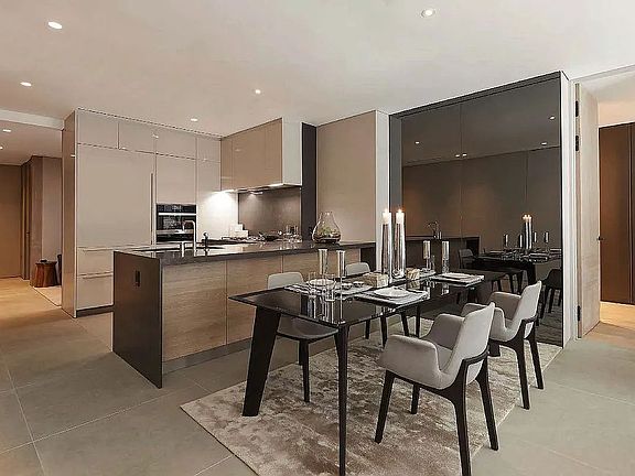 This 1,255 SF two-bedroom, two-bathroom residence is designed with the distinction of a privately commissioned home, offering generous proportions and abundant light throughout. Upon arrival through an Augsburg oak paneled private elevator landing, you are welcomed into a gracious den prior to entering the Poliform-Varenna chef's kitchen.