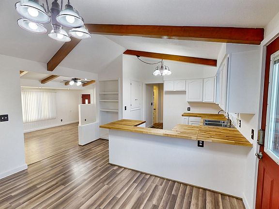 This updated ranch style home boasts 4 spacious bedrooms, 2 modern bathrooms, and a single car garage with a convenient breezeway. The low maintenance exterior with new roof, new siding, and new windows is complemented by a stylish and modern interior featuring fresh paint with black accents. New flooring throughout gives the home a fresh and clean feel. The open floor plan allows for easy entertaining and the large backyard is perfect for outdoor gatherings. The master bedroom is especially spacious and features a walk-in closet, along with a desk area providing ample storage or office space. The renovated kitchen boasts gorgeous butcherblock countertops that add a touch of elegance and sophistication. Don't miss your chance to own this beautifully updated home with an interior design that will impress. All this is conveniently located on a corner lot providing off alley parking and\or future detached shop build options. Don’t wait…call Trevyn Wolf for your showing today!! 785.422.5155 Under Contract. Bring back up offers...