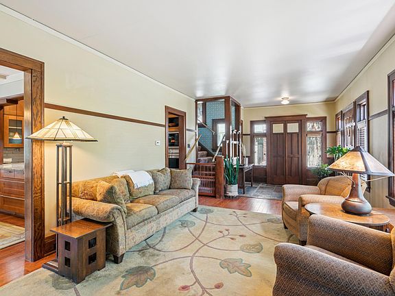 Welcome to this timeless 3-bedroom, 1-bathroom Craftsman home nestled in the heart of Tangletown. From the moment you step inside, you’re greeted by rich woodwork, original built-ins, and detailed crown molding and ceiling finishes that reflect the home’s 1917 character. The sun-drenched living room features a cozy wood-burning fireplace flanked by custom cabinetry, while the adjacent formal dining room showcases a coffered ceiling and elegant millwork.