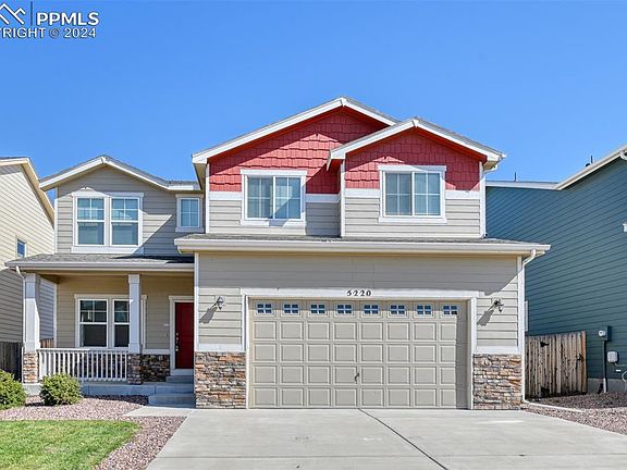 Newer 4 bedroom, 3 bath, 2 car garage home, 2875 sf! Main level office, hardwood floors, family room, kitchen nook and walk-out. Granite kitchen counters, tall cabinets with plenty of storage, stainless steel appliances and pantry. Upper level has 4 bedrooms, primary suite with 5-piece bath and walk-in closet, 3 other bedrooms, hall bath with 2 vanities and convenient laundry room with washer and dryer. Expansive unfinished basement. Fenced and sprinklered back yard with mountain views! Easy commute to schools, COS airport, Peterson AFB, Schriever and more!