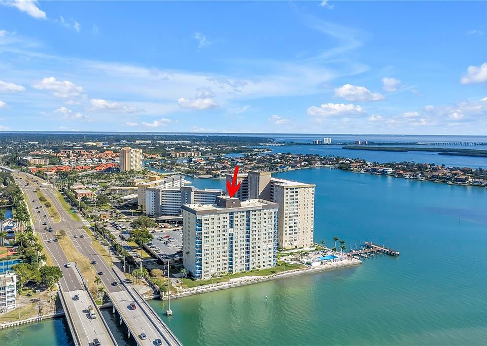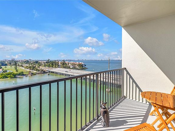 Welcome to Paradise says this 2 bed 2 Bath Waterfront Condo in the beautiful gated Point Brittany. This condo offers a wonderful 9th floor view of the water from the Living room windows and off the private balcony. You can see all of the nature including dolphins frolicking, manatees and pelicans flying by. You can see the Tierra Verde Bridge and the Boca Ciega Bay leading to St Pete Beach and cruise ships in the distance. Back inside the condo features an updated kitchen and nice bathrooms. The 2 bedrooms are nice sized and have large walk in closets. The condo features a dining living room combo perfect for relaxing or entertaining. This condo comes with an extra storage unit. Point Brittany has 4 heated pools for use along with a hot tub. There are tennis courts, shuffleboard, kayak launching station, multiple fishing piers, bbq pits, lighted sidewalks along the water and a pavilion for entertaining. The clubhouse also features a fitness room, yoga studio, meeting rooms, billiard rooms along with an area for crafts and reading. There is a large balcony over looking the water a wonderful place to play or relax. This condo is quick to Fort De Soto State Park and 2 miles to the sugary sandy beaches. This is located a mile from several grocery stores and shopping. It is quick to HWY 275 and just minutes from Downtown St Pete. The condo is just 25 minutes from St Pete and the Tampa Airports. Amenities galore, a great location and a water view condo waiting for you! Welcome Home to Point Brittany Paradise!