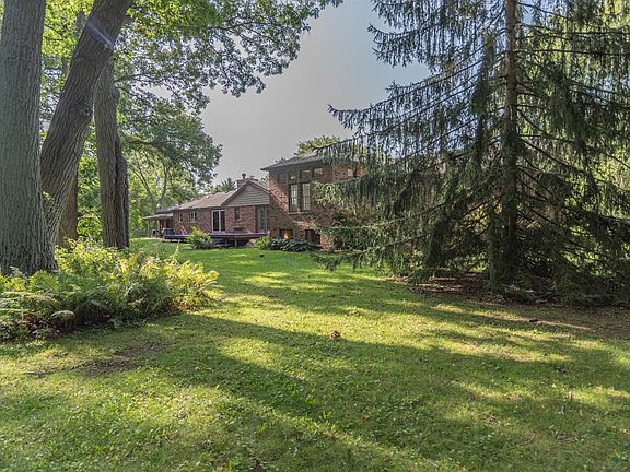 This exceptional home started out as a ranch. In 1998 an addition was built which includes a fantastic 470 sq. ft. primary suite and a separate sunroom with a private two vanity tiled bathroom, jacuzzi, and shower/steam room. Below the primary suite is a finished rec-room with a walk-out to the back yard. The main level has 3 bedrooms and 2.1 bathrooms leading to an open kitchen living and dining room as well as a study. Equipped with a tankless water heater and recirculating pump to have hot water available at every faucet bath and shower instantaneously. Many rooms have a fresh coat of paint. The house sits well off the road with a spacious acre and a half private fenced in backyard with mature trees and gardens on over two acres of property. Two years ago the seller added solar panels to the property which cover over 100% of the power usage. DTE credits are offered for electricity produced over the home's need. Attached, by the back laundry/mudroom is a separately zoned well heated 2 car garage. The 3 car detached garage has a car charger also powered by the solar panels.