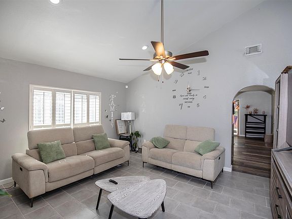 This adorable home is situated at the end of a quiet street, boasting over half an acre! The covered porch offers a great place to drink a cup of coffee in the morning. Upon entering the home, notice the tile flooring that flows throughout. The Family Room has a skylight that offers an abundance of natural light. The eat-in Kitchen has been updated with pretty granite counters and dazzling stainless steel appliances. The Primary Bedroom features a generous walk-in closet and an ensuite with updated cabinetry and counter, as well as tiled shower. Both Secondary Bedrooms offer ample space. The second, efficiency-style house has a Kitchen and bathroom with shower. It makes a great workshop if not needed as a second house. The huge yard ensures there is plenty of room to roam here. This property is currently tenant occupied until Jan 31, 2026.