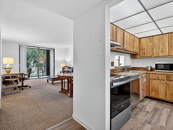 Active 55+ Building, PET FREE, Certified animals only. Beautifully updated, 1 bed., 1.5 bath condo offering serene garden views from a spacious screened balcony with Accordion Hurricane Shutters. This inviting unit features: new Whirlpool and Samsung stainless steel appliances, fresh paint throughout, new vinyl plank flooring in the kitchen, updated bathrooms with new toilets, walk-in closet with vanity area, A/C replaced in Aug. 2022. Top floor unit, elevator for easy access. Storage closet on balcony & additional community storage just steps away. Laundry facilities are conveniently located right across from the unit. Enjoy peace of mind with 24-hour guard-gated entry and security patrol. Assigned parking space, ample guest parking. Condo fees include: Water, Cable TV and Garbage removal. Application and interview with the Condo Association is required prior to move-in.