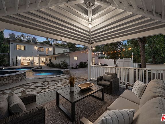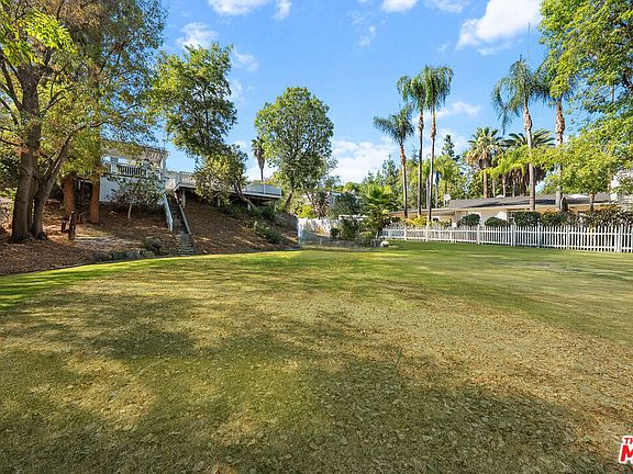 Nestled on a nearly half-acre lot on a tranquil, tree-lined street, this exquisite storybook home masterfully blends timeless charm with contemporary elegance. The property captivates with exceptional curb appeal with a graceful half-circle driveway, lush landscaping, and a remarkably large grassy lawn. Step inside to the home with five spacious bedrooms, four bathrooms, and discover the grand living room highlighted by elegant white oak hardwood flooring and three stunning French doors that bathe the space in natural light while seamlessly connecting to the outdoors. The expansive dining room, adorned with a cozy nook and striking fireplace, sets the stage for unforgettable gatherings. The chef's kitchen is a masterpiece, boasting abundant cabinetry, generous countertops, a charming breakfast nook, and top-of-the-line stainless steel appliances. The primary suite is a serene retreat, complete with soaring vaulted ceilings, a private balcony, a spacious walk-in closet with custom cabinetry, and a spa-inspired en suite bathroom featuring a rainfall shower, luxurious Jacuzzi tub, and dual vanity. The backyard is a true haven, showcasing a sparkling oversized pool, a cascading waterfall Jacuzzi, an inviting cabana, and a fully equipped outdoor kitchen with a grill and sink ideal for al fresco dining and entertaining. The sprawling lawn offers endless possibilities for recreation and leisure. Perfectly situated near vibrant dining, premier shopping, and amenities such as The Village, Cedars-Sinai, Whole Foods, and Equinox, with easy access to the 101 Freeway, this home offers an unparalleled blend of tranquility, luxury, and convenience. Prepare to fall in love with this enchanting residence.