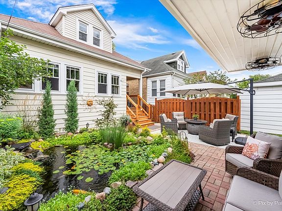 Absolutely exquisite SFH with all the curb appeal! Impeccably maintained and upgraded with stunning features throughout. This 4 bedroom, 3 bathroom home has all the bells and whistles and charm to boot! Features you just don't find any longer such as crown molding, gorgeous hardwood floors, and even a koi pond! The kitchen is fully equipped with tons of cherry cabinetry, all stainless steel appliances and an island. The dining room is a perfect space for entertaining or quiet nights alike. Dedicated spaces on the main floor but still feels open with a great flow. Two main floor bedrooms with versatile needs (One is set up as the den right now). Upstairs you will find the primary bedroom, an additional bedroom, and a full bathroom. The basement is an OASIS with a great family room for game nights, football, you name it! You will find an updated full bathroom (with a walk-in shower) plus the massive laundry room in the basement as well. Plus lots of additional storage AND room for an extra fridge, workbench, crafts, etc. The backyard is glorious with green space and a seating area - all fenced in. 1.5 detached car garage for convenience. Located a stone's throw from Mariano's, Chase Bank, Forest Glen Metra station, Kennedy Expressway, and Forest Glen Woods! Perfect for CFD and CPD.