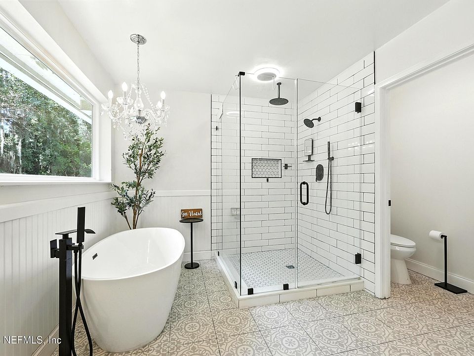 Step outside to your backyard oasis — a screened and covered patio, sparkling saltwater pool with paver deck, and fenced yard dotted with citrus trees. A poolside shed adds convenient storage for tools and toys. Stroll through the neighborhood down to the St. Johns River and enjoy the peaceful setting all with no HOA restrictions.