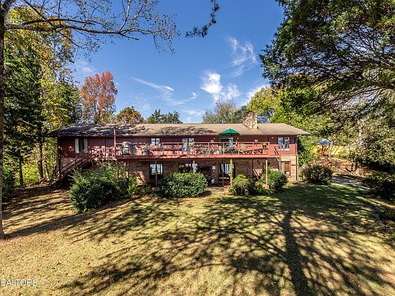 Lakeside Basement Ranch home- beautifully located on 1.75 acres on a stunning private peninsula on Ft. Loudon Lake in Riverbend with stunning views of the shimmering waters of the Tennessee River. ...Renovate or build your dream home.... Enjoy life on the lake. Classic basement ranch home built in 1976 designed with full finished basement. The home features 4 Bedrooms, 3 baths with 4 main level bedrooms and 2 bedrooms on the lower level . The exterior is composed of frame & brick on a lovely gentle sloping lot in Riverbend overlooking The Tennessee River. Picturesque views open to beautiful greenscaped grounds, large deck with expansive waterfront vistas & mature trees.The back yard opens to a fishing pier and boat dock with 2 lifts and boathouse with railroad car and boat launch. 2 car main level garage with lower level garage/workshop. Constructed in 1976, the home has been well maintained by the seller. A circular driveway frames the front yard and gives ample parking for guests Level 1 -2464 sq ft Lakeside views everywhere! Slate entrance foyer with wrought iron railing to the lower level Lovely living room w/ bright windows opens to the dining room connecting to the large kitchen area and breakfast room all with waterfront views.The open kitchen features wood cabinets, dovetailed drawers, pantry & supply storage.The counter tops are laminate with a deep porcelain sink. The large island provides a bar area for casual snacks & is ideal for entertaining. It also cleverly houses additional storage. Walk out full basement with garage door to outside. A lakeside back entrance offers a large recreation room with fireplace, full bar area & kitchen. Ample storage rooms. There are 2 bedrooms and a full bath. An office or storage room gives a private area to work Garage door opening for easy access to water sports equipment Easy access driveway with 2 car large garage w/main level entry.