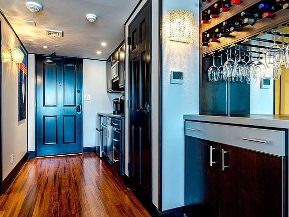 custom-built dry bar with a wine rack with storage. Your unit will be protected with