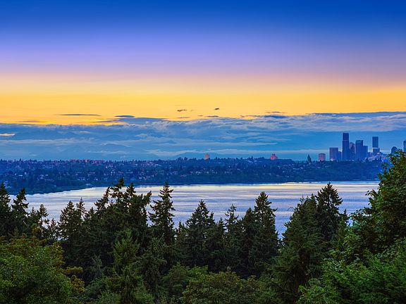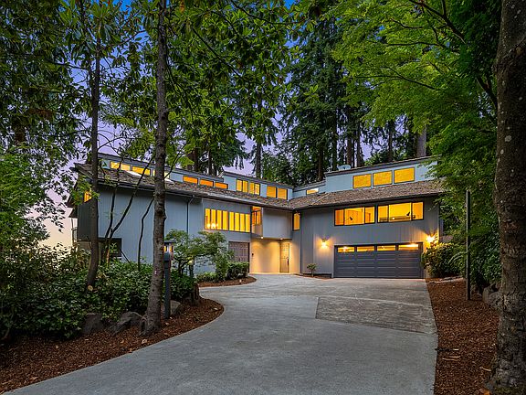 Classic Leo S. Fischer mid-century modern design in the heart of Mercer Island. Inviting living room with warm hardwoods, soaring ceilings, stylish stone fireplace and views of the lake and city. Easy flow from living to wet bar with refrigerator and big view deck. Chef's kitchen with Stainless Steel appliance, granite counters, gas range and walk-in pantry. Meals may be spent in dining area with fireplace or through French doors to the back deck for an alfresco experience. Tranquil primary suite upstairs complete with en-suite bath and dual vanities. 3 additional beds and a 3/4 bath on upper with a flexible den/office and rec room ready to be envisioned to suit your needs--study space, fitness area or creator's studio? 2-car attached garage and easy access to parks, trails, shopping and I-90.