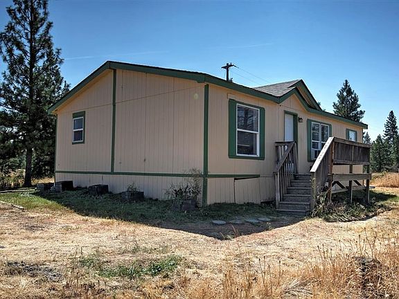 Shop, Creek, Pond, Dry Cabin, Views...This place has it all! Do not miss this 3 bed, 2 bath newly remodeled manufactured home (new counters, flooring, cabinets, trim, and a fresh coat of paint-All updates are now complete despite what you see in the photos). The home is situated on this private and secluded property with amazing views. It is less than 30 min to Airway Heights and is beautifully treed with mixed species timber on 19.7 acres. The topography is varied, a creek runs through it, AND it has a seasonal pond. The large shop is 24 x 50 X 12 with a concrete floor and it's own separate 200A electrical panel. The gravel road leading up to the home is well maintained. The well produces approx 18 GPM and there are two septic hookups...one for your RV! Home is a ground-set with vapor barrier and skirting.