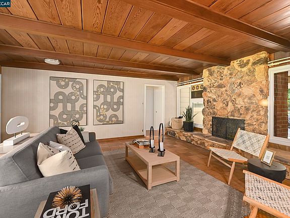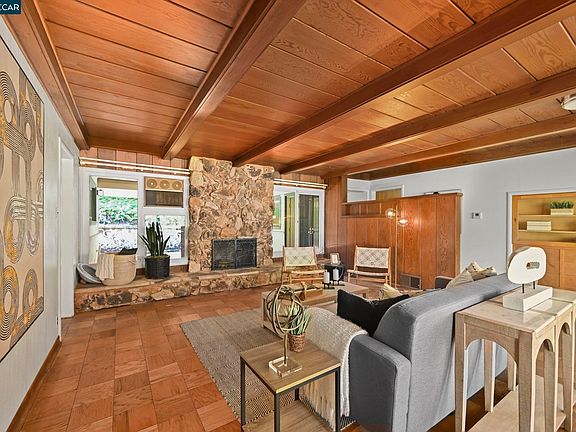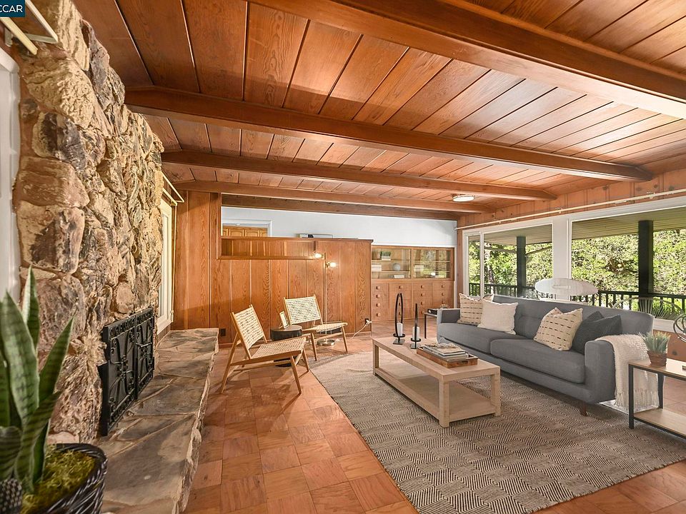Welcome to 5221 Alhambra Valley Rd! Single story 3 bedroom, 2 bathroom midcentury Martinez home sitting on just under two acres in the picturesque Alhambra Valley. As you enter off the wrap around porch you are welcomed into a cozy living room with beautiful natural wood beam ceilings, hardwood floors and a wall of windows overlooking the tree covered front yard. One wing of the house features an open eat-in kitchen with ample cabinet space, large laundry/mudroom with outdoor access, bedroom and full bathroom. There are two additional sunny bedrooms and a full bathroom on the opposite side of the home. Finished basement with garage access makes for endless possibilities, play room, home gym or extra storage. The backyard features a wood deck overlooking the property’s orchard is the perfect space to entertain and enjoy the peaceful surrounding. Well maintained and ready for new owners, this is a must see!