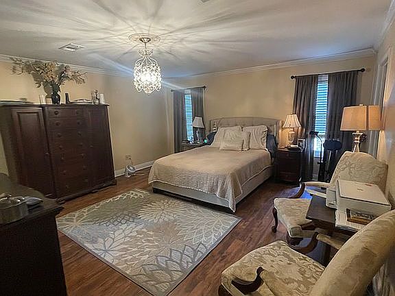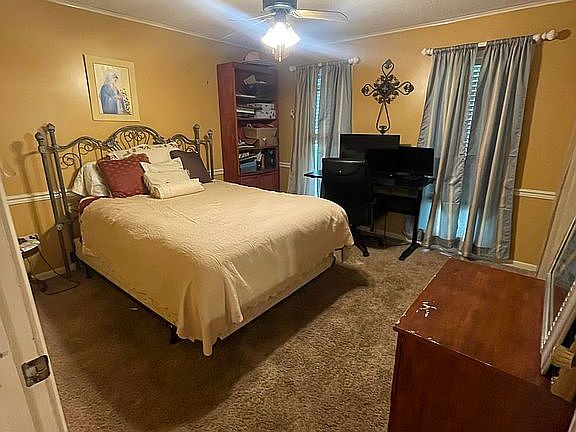 Master bedroom is over 200 square feet. There is a big walk in closet and a bathroom with a jacuzzi tub.