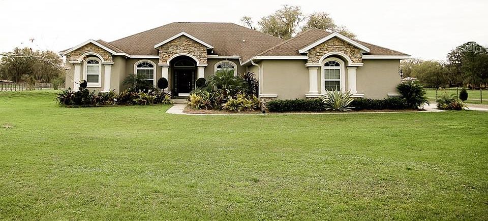 RARE FIND! This beautiful home sits on 1.36 acres! Built in 2016, home offers 2354 sqft! 4 bed 3 bath with study/den, formal dining, huge great room and open kitchen! Double split floor plan! Kitchen offers wood cabinets with granite counter tops, stainless steel appliances and HUGE island over looking the great room. Master Bedroom has 2 walk in closets, a massive walk in shower with dual heads and his and her sinks. Large 22x26 3 car garage. Screened in Lanai over looking your back yard. Easy to view. Call today for your personal tour!