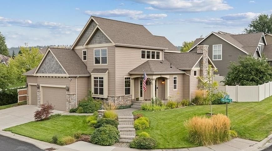 Exceptional craftsmanship with this George Paras design in one of Spokane's SouthHill most desirable neighborhoods. From the moment you step inside notice this grand entry with tall ceilings a stone gas fireplace and an open floor plan. Enjoy a strategically placed office with large windows, a gathering room plus french doors that lead you to another main floor living room. Upstairs a primary suite with cathedral ceilings and a spacious full primary bath, down the hall two bedrooms and a full bath. Need more space?? The basement has another gathering spot, full bedroom/bath and an exercise room. Lots of space in this 4 bedroom/3.5 bath home. Plus the backyard is private with fruit trees, views of Browne's Mountain and right next door to the private park. A great spot! A great home! A great location!!