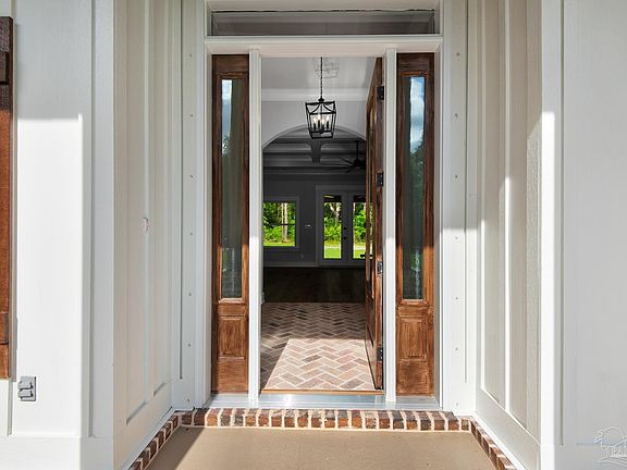 Stunning Custom-Built Home on One Acre in the Heart of Pace Welcome to this exquisite, newly constructed custom home, perfectly situated on a spacious one-acre lot with no HOA. Designed with both elegance and functionality in mind, this property offers 5 bedrooms, 3.5 bathrooms, and exceptional craftsmanship throughout—an ideal blend of luxury and everyday comfort for modern family living. As you step inside, you’re greeted by a beautifully appointed foyer featuring Chicago brick accents, setting the tone for the upscale design found throughout the home. The living room showcases coffered ceilings that add a touch of sophistication, while just off the foyer lies a well-placed bedroom. Beyond that, the expansive primary suite awaits, offering a serene retreat with tray ceilings, an antique barn door, and a spa-inspired ensuite bath. The primary bathroom features hexagon-tile flooring, a freestanding soaking tub, a glass-enclosed walk-in shower with bench seating, a private water closet, and dual custom walk-in closets. The chef’s kitchen is a true showpiece, equipped with quartz countertops, a farmhouse sink, and a professional 48" dual-fuel range with a 7-burner gas cooktop, cast iron griddle, and double electric ovens. Additional highlights include floor-to-ceiling cabinetry, a vent hood, under-cabinet lighting, a pull-out microwave drawer, herringbone subway tile backsplash, and an oversized island ideal for entertaining. You’ll also find a full-sized refrigerator and freezer, a spacious walk-in pantry, and a practical drop zone. The gage is thoughtfully designed to fit a king-cab truck, and the open dining and additional living areas offer ample space for gatherings. Upstairs, you'll discover a loft-style bedroom with a full bath, a flexible office or media room, and a walk-in attic for extra storage. Step outside to the covered lanai, featuring a gas fireplace and a dedicated area perfect for an outdoor kitchen—the ultimate setup for relaxing and entertaining.