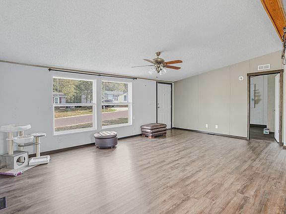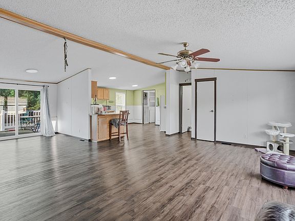 Beautiful home nestled on large newly fenced in yard! This 3 bed, 2 bath, 1 car garage is an open floor plan manufactured home on foundation with nice crawl space. Seller has updated both bathrooms completely, new trim, flooring, new windows, new lights in the kitchen and brand new stove, fridge and washer/dryer staying as a bonus! Fiber was just installed as well! Come take a look for yourself!