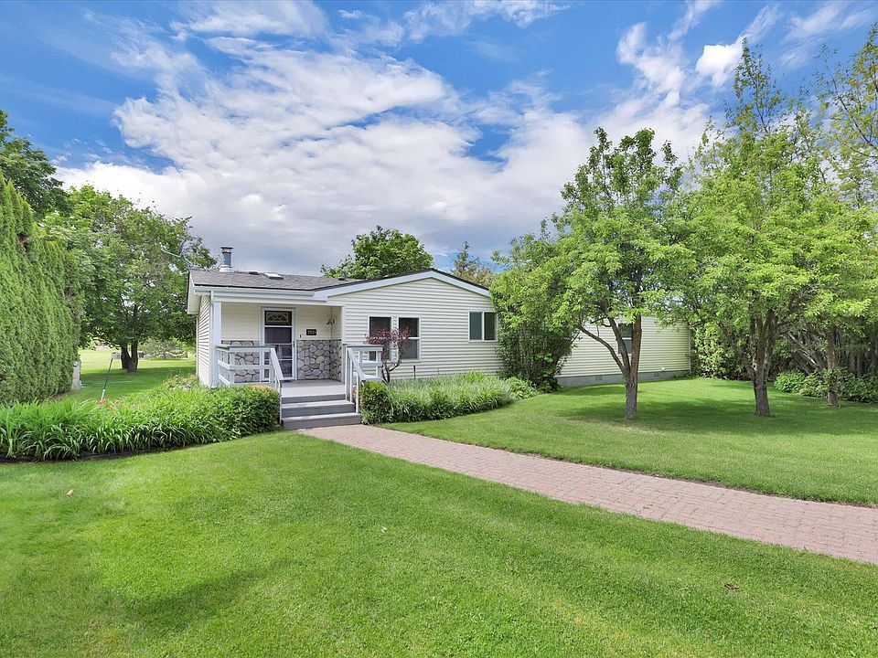 Welcome home to a tranquil 3 bed, 2 bath home on over 3.5 acres. Home has a newer roof, annually maintained furnace, water heater and central A/c. Main floor living with a spacious 1782 square foot manufactured home with an open layout. Full of light with large windows throughout, skylights, oversized master suite with plenty of storage. Kitchen has tons of counter space and storage, as well as a breakfast bar for extra seating. All appliances stay! Enjoy a covered back porch and watch the sunset and amazing countryside view.  Lots of space for gardening, and plenty of space for a small farm and livestock. Flat parcel is serviced with highly desirable irrigation water and a great sprinkler system.  Beautiful 864 sq foot shop with covered lean to. Spacious, well cared for barn, and breathtaking grounds; maintained beautifully. Don't miss out on owning your own piece of heaven!