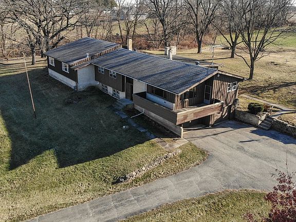 Perched atop a hill is this midcentury raised ranch home on 5AC zoned AG in Cherry Valley township! 4,453sqft of well-preserved living space with a 38’ indoor saltwater pool in excellent condition! Owned by the same family since it was built in 1969. 40x60 pole barn is ideal for potential equestrian use or storing your toys. Outer perimeter of property is wooded for maximum seclusion. There is an abundance of fruit bearing trees, bushes and vines producing grapes, raspberries and apples. The residence itself is midcentury chalet style with brick and authentic board and batten wood exterior, architectural shingled roof, massive glass entry with ornate solid wood front door and an elevated deck overlooking the circle driveway and front lawn. True to form and “of the period” interior style would be spectacular if updated to current design trends. All bedrooms and two full baths are on main level, along with the kitchen, dining and living areas. Lots of windows for an abundance of natural light. The lower level offers a spacious rec room featuring a limestone masonry fireplace with built-in water garden features, full bath, laundry space and stairway to the indoor pool addition with newer pool heater and pump. Rear stairway from kitchen leads to a large 4-season room with another fireplace. Updated mechanicals including Heil hi-eff furnace and water heater. Move-in ready, but scope of updating is subjective. Priced accordingly and in line with recent appraisal reflecting condition, which can be made available upon request. Sold “as is” to settle estate. Taxes reflect no exemptions. Endless potential! You just have to see it!
