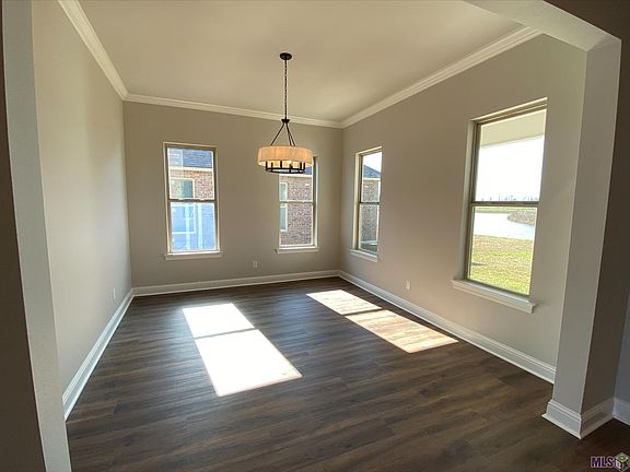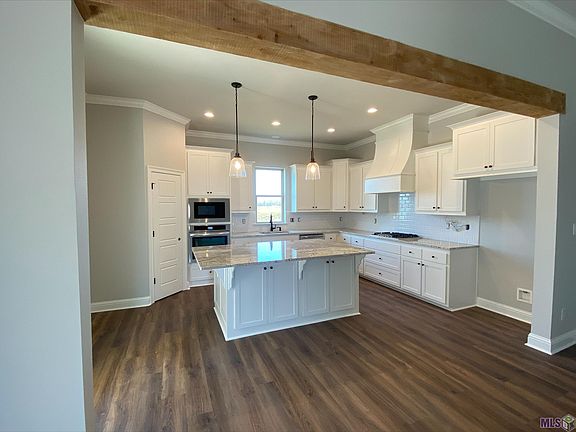 Broussard B plan by Level Homes in the Riverton community! The Broussard plan is a one story home featuring four beds and three full baths with an open and spacious layout and just over 2300 sq feet! Enter this home from the very inviting front porch complete with stained cypress columns and a flickering gas lantern. Once inside, you will enter into the foyer which leads you into the spacious living room, kitchen and separate dining. The gourmet kitchen is separated from the living room by an exposed cypress beam and features stainless appliance package including a 30" 5 burner gas cooktop, single wall oven and built in microwave, custom painted wood cabinets with 5" hardware pulls, large center island with hanging pendants, 3 cm Alaska White granite and white subway tile backsplash in a herringbone pattern and a walk in pantry. The master suite is tucked away at the rear of the home with a spa like bath including dual vanities, separate tub and custom job built shower with a seamless door and a HUGE walk in closet. Beds 2 and 3 are located off the garage entry and these rooms share a full bath which is located across from the office! Bed four is on the opposite side of the home with a full bath located in the hallway. Large walk in laundry room with a storage closet within. Patio will be plumbed for gas grill. Yard will be professionally landscaped and fully sodded. Home is READY NOW! Other lots and plans available. *The interior pictures are not of actual home but are of the same floorplan, colors and options may vary.