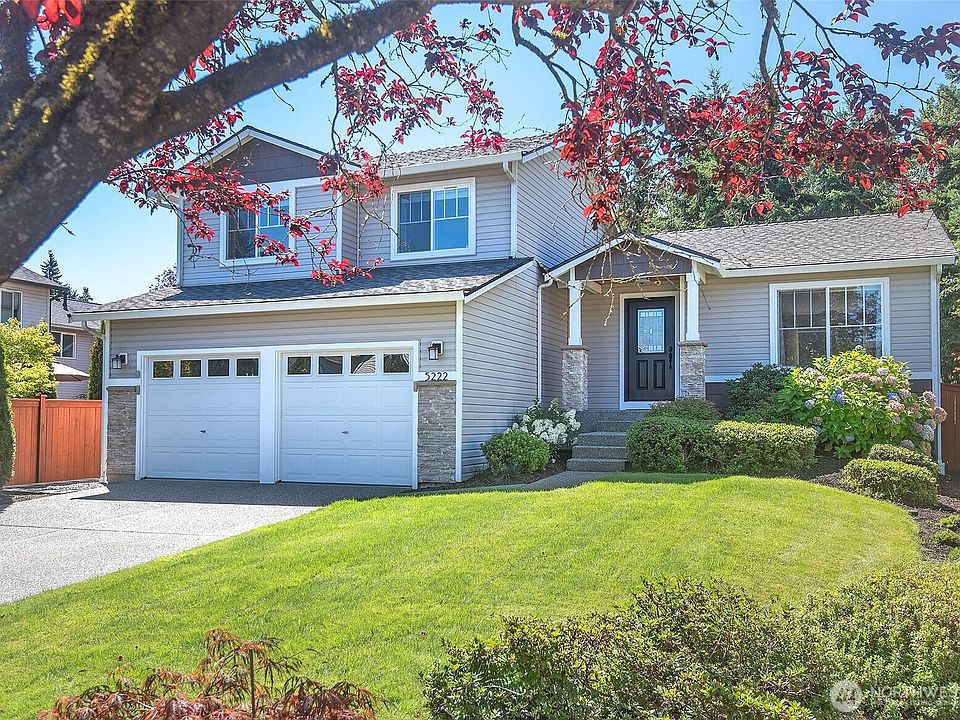 Impeccably updated & maintained move in ready home in Silver Firs. Step inside and discover a light filled island kitchen w/ quartz countertops, double oven & the all important pantry. The kitchen opens up to the living room w/ a gas fireplace. Up the stairs is a well appointed primary suite featuring a gorgeous, multiple head shower w/out worries of running out of hot water. This home features a tankless water heater. Enjoy year round comfort w/ A/C & the garage is EV charger ready w/ 220 outlet installed. Outside the property boasts a fully fenced back yard, storage shed, raised garden beds and lit gazebo over an expansive patio. Located amongst community parks, paths & trails & the vibrant Mill Creek Town Center is minutes away.