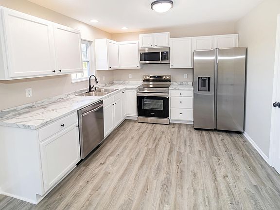 Fenced yardBright sunroomLarge double corner lotFresh paintNew stainless steel appliancesNew carpet in bedroomsWhite cabinets
