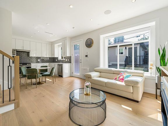 Gorgeous duplex in Kensington Cedar Cottage. Stunning 3 bedroom, 3 bathroom home situated on a beautiful corner lot with beautiful city and mountain views. Open concept living on the main floor with 9' ceilings, a sleek fireplace and full bath. Modern kitchen with S/S appliances. Relax or entertain in your private backyard. The top floor offers 3 beds, 2 baths with a spacious Primary bedroom with a spa-like ensuite bath and walk in closet. Complete with HRV, A/C, Radiant Heat, quartz counters, security cameras, white oak engineered flooring, private detached garage plus carport and new home warranty. Located just steps away from Kensington Community Center, within walking distance to schools, transportation, shops and restaurants along Victoria Dr. OPEN HOUSES THIS SAT&SUN 2-4PM
