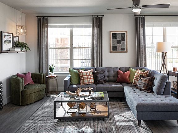 - Exterior features: 9' Ceilings Throughout, Business Center, Car Wash Station, Catering Kitchen and Game Area, Courtyard, Designer Tile Backsplash in Kitchen, Electric Car Charging Stations, Hardwood-Inspired Flooring, On-Site Management, Package Receiving, Parking Available, Pet Park, Private Yards*, Quartz Countertops, Short Term Lease, Smart Lock Homes, TV Lounge, Townhomes Available, Undermount Sinks in Kitchen and Bathrooms, WiFi Throughout All Common Areas