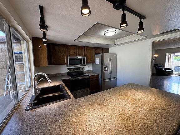 Community Amenities: Pool, Tennis Courts, Picke Ball Courts & Clubhouse! Charming single-story 3 bedroom, 2 bath home in Glendale. This home features a cozy family room with a brick fireplace and a separate living room for extra space. The kitchen overlooks the backyard and includes appliances plus a breakfast bar. Enjoy outdoor living with a covered patio and a versatile workroom in the backyard. Additional highlights include a washer & dryer, covered carport, and a welcoming front patio.