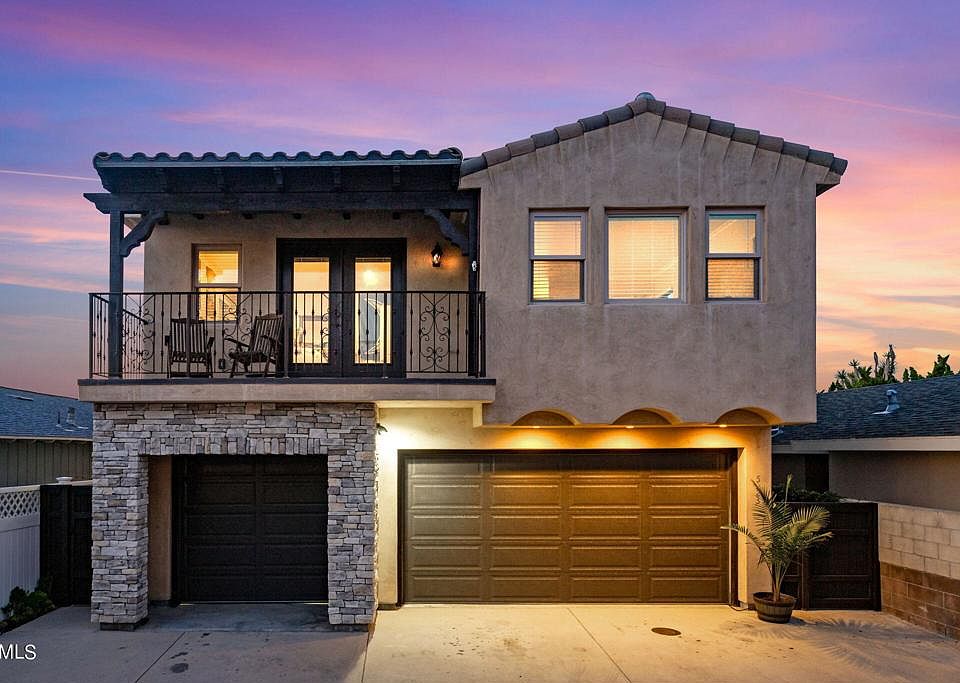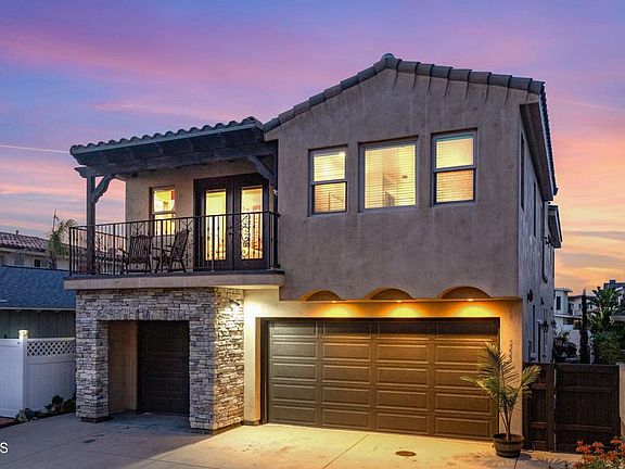 Just steps to the sand and your 2 mile beach walk at sunsetGreat ocean island mountain and city views from your private expansive roof deck with spa and hook ups for outdoor kitchenwhere you can take in the stars and city lights at night or wake to sunrise coffee while soaking in your spaThe home has a timeless combination of pastel stone, imported Italian tile, and quartz slab counters, with tumbled limestone flooring and hard woods. As you enter you are drawn into the heart of the open floor plan by the sweeping circular staircase, with its custom wrought iron handrails, with stone and hardwood stairs, ascending to the large second floor family room, 3 more bedrooms, with 3 bathrooms, each with custom tile and granite counters, a flex office and or gym room, and the third level hardwood staircase leading to the expansive roof deck, where you can relax in privacy and breathe the fresh ocean air, listen to favorite music with a background of waves crashing on the sand while, enjoy the whitewater view and Channel Islands backdrop.It's truly a 24/7 retreat, where you can watch the sun rise over the Camarillo Grade, and take in the city lights from Ventura and surrounding communities, and it even has an unobstructed view of the Pink Moment from the mountains in Ojai.The primary Master Bedroom also has some of these same features with nice views of Ventura and Ojai, a fireplace, and its own balcony, with large Master Bathroom with uts own Powder Room, an elegant freestanding soaking tub, large shower pre-plumbed a steam unit, keenly integrated quartz counters with stone inlay backsplashes, Italian tile flooring, and slab granite bench seat.The primary Master Suite sits at the opposite end of the house from the other junior Master Suite which has a private en-suite and ocean-view covered porch.The first level also has a Studio Suite with separate exterior entrance and built in cabinetry for a full kitchenette that can be converted to a J-ADU if so desired.The property has an oversize 2-car garage with a 3rd car garage sized for your own beach cart or large storage area, with additional built-in cabinetry and overhead storage racks, tankless water heater, and dedicated EV charging circuit.The yard is nicely landscaped and offers a open access indoor outdoor flow to the back patio and rear gate with direct access to the Mandalay Beach walkway.All Perched within the shores of Mandalay Beach.