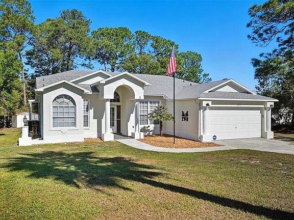Welcome to your beautifully updated oasis in the heart of Spring Hill, Florida! This stunning 3-bedroom, 2-bathroom pool home offers 1,622 square feet of refined living space on a generous 0.33-acre lot. With elegant upgrades, a thoughtful split-bedroom layout, and a spacious outdoor retreat, this home is perfectly designed for Florida living at its best. Step through the front door into a bright, airy formal living room featuring cathedral ceilings, abundant natural light, and serene views of the screened-in pool through sliding glass doors. To your right, the formal dining room sets the stage for intimate dinners and festive gatherings. The heart of the home is the functional kitchen, offering ample cabinetry, closet pantry, and a cozy breakfast nook—ideal for casual dining. Just off the kitchen, the inviting family room features a newly built-in custom wall unit, creating a warm and welcoming focal point. The primary suite is a private retreat tucked away for peace and quiet. It features vaulted ceilings, dual closets, and direct pool access through its own set of sliding glass doors. The updated en-suite bathroom includes new tile flooring, a garden soaking tub, dual vanities, and a beautifully tiled walk-in shower—offering a spa-like experience at home. Bedrooms two and three are located on the opposite side of the home, each with ceiling fans and ample closet space. The second bathroom, conveniently situated between the guest rooms, includes a tub/shower combination and a direct door to the lanai—perfect for poolside guests. Additional highlights include: Fresh interior and exterior paint (recently completed) New flooring throughout the kitchen, living areas and bedrooms New dishwasher Custom feature wall in the living room and dining room Partially remodeled primary bathroom Tile flooring in all wet areas for durability and easy maintenance Indoor laundry room Spacious 2-car garage Step outside to your private backyard paradise. The screened-in lanai and pool area offer the perfect setting to relax, entertain, or enjoy the Florida sunshine year-round. The expansive fenced backyard provides plenty of space for gardening, pets, or family fun. Centrally located in a desirable area of Spring Hill, you’re just minutes from shopping, dining, medical facilities, parks, and the Suncoast Parkway for a quick commute to Tampa and the Gulf Coast beaches. This move-in-ready home checks every box—don’t miss your opportunity to own a piece of Florida paradise. Schedule your private showing today! ( NO HOA! Ample extra space on the lot if you have a boat or RV. See Survey.)