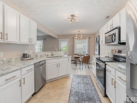 Granite countertops and new appliances in the kitchen. Wood floors downstairs and New carpet upstairs.
