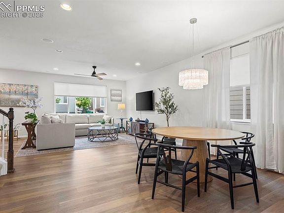 Beautiful two-story home in a great location with open space right across the street, finished basement, a low maintenance backyard, and modern interior finishes. Conveniently located near Plum Creek Golf Club with parks, trails, shopping, and dining all just moments away. Inside, this spacious home features a bright main-floor office and a great open room. The great room features a dedicated formal dining space with a custom chandelier. The eat-in kitchen offers granite counters, pendant lighting, a pantry, and easy access to the backyard. Upstairs, enjoy a large loft, convenient laundry, and a private primary suite with a walk-in shower, granite counters, and custom walk-in closet. Two additional bedrooms share a full bath and complete the upper level. Head to the finished basement to find a versatile rec room, fourth bedroom, and an additional bathroom with a walk-in shower—ideal for guests or extra living space. The xeriscape backyard features low-maintenance turf, a spacious patio, and is fully fenced for furry friends – perfect for entertaining without the hassle of maintaining a lawn. Near I-25 makes commuting to South Denver, DIA, or Colorado Springs easy. Don’t miss this beautiful two-story home in a great location!