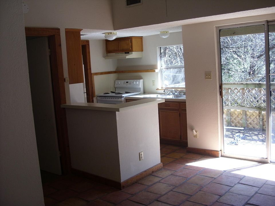 Cabin duplex in the woods. Quiet. Tranquil. Saltillo floors downstairs. Loft bedroom with deck, overlooking creek. Deck off of kitchen. Wildlife. Owner pays water. No smoking on the property. Limit of 2 small pets with all shots and neutered. Tenant responsible for electric and wifi