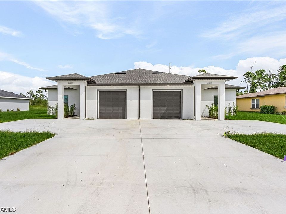 Builder offering 30 year fixed as low as 4.9% with payments starting at only $3100 per month P/I*** on this Brand New Construction Luxury Villa presents an exceptional opportunity for investors or those seeking affordable living options. Each side boasts 3 bedrooms and 2 bathrooms, ensuring a comfortable and inviting living environment for tenants or potential homeowners. The generous floor plan encompasses 1196 square feet within each unit, complemented by a covered patio under the truss, allowing ample space to cater to diverse lifestyles. Indulge in the luxury of high-quality upgrades that adorn the duplex, including sleek stainless-steel appliances, 42" upper cabinets, and elegant granite countertops in the kitchen area. The flooring is adorned with resilient Luxury Vinyl Plank (LVP), offering both contemporary aesthetics and easy upkeep. Your safety and peace of mind are assured, as Hurricane Impact Windows negate the need for remote shutter installation, providing optimal protection during severe weather events. Whether you're eyeing a profitable investment venture or searching for your personal haven, this duplex merits serious consideration.