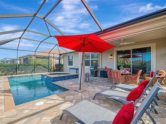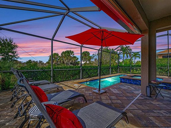 WELCOME TO VENTURA VILLAGE.. located only THREE MILES from MANASOTA KEY and THREE nearby BEAUTIFUL BEACHES located on The Gulf of Mexico. The LOW HOA FEES of only $93/ month, along with LOW TAXES, and NO CDD FEES make this property even more desirable. This STUNNING POOL HOME most certainly offers a blend of elegance, function and thoughtful design. This magnificent and well cared for home offers three bedrooms and two full baths along with a VERY OPEN and INVITING FLOOR PLAN, HIGH CEILINGS, CROWN MOLDING and BEAUTIFUL UPGRADED TILE FLOORING THROUGOUT. The large and very OPEN KITCHEN contains enhancements which include GRANITE COUNTERTOPS, STAINLESS STEEL APPLIANCES, SOLID WOOD 42" CABINETRY, a LOVELY BACKSPLASH, as well as UNDERCOUNTER LIGHTING.. all which add warmth, style, and sophistication. Open and inviting, the living spaces flow seamlessly, creating a welcoming environment for gatherings of any size. For total peace of mind, both custom accordion style shutters and three remote controlled electric hurricane screens were thoughtfully added to all windows and on the outdoor covered lanai area. The electrical panel has also been upgraded with Whole House Surge Protection and the Air Conditioner has been upgraded with an ultra violet air sanitizer. The exterior of this home was also recently painted (2023). The carefully planned and very well designed LUSH LANDSCAPING truly delivers both SUPERIOR and CAPTIVATING CURB APPEAL. The High ceilings, quality finishes, and carefully curated updates most certainly speak to a level of care and design rarely found. Enter outside to your WEST FACING PRIVATE OASIS which is truly ideal for relaxing and entertaining and where a large OVERSIZED POOL CAGE, CUSTOM BUILT HEATED POOL and SPA, as well as MEZMORIZING SUNSETS await you, your family, and your guests. Whether you’re swimming, soaking in the SPA, entertaining, or just wishing to enjoy a quiet morning or afternoon.. this outdoor space abutting a preserve area is truly a retreat. The gated community of Ventura Village also has a community pool and is centrally located to an abundance of nearby shopping, dining, beaches, and is also only a short drive to Beautiful Historic Downtown Venice and Wellen Park. This exquisite home delivers an opportunity for those seeking comfort, style and substance in one exceptional property. Please Schedule your private showing today while this opportunity of a lifetime is still available.