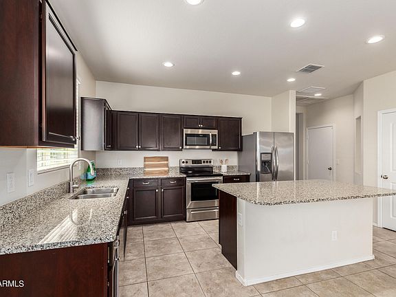 Welcome to Copper Basin! Built in 2019, this contemporary gem offers the perfect blend of style and comfort. Entertain in style in the gourmet kitchen, featuring sleek granite countertops, a large island, and stainless steel appliances. This home features a desirable split floor plan, with an additional den and three spacious bedrooms, providing both privacy and functionality for any lifestyle. Unwind in the luxurious primary bathroom, complete with a spacious walk-in closet and dual vanity. Copper Basin is a coveted community boasting a community center, pool, scenic walking paths; offering the ideal blend of convenience and tranquility. With modern amenities and thoughtful design throughout, this is Arizona living at its finest. Don't miss out on the opportunity to make this your own!