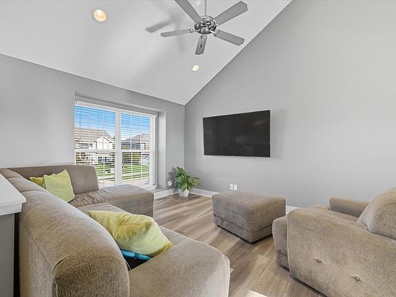 This 3-bedroom, 2.5-bath home offers practical updates and efficient layout. Recent improvements include new siding, roof, and gutters. Inside, the main level features durable LVP flooring and vaulted ceilings that add natural light and openness. The kitchen is finished with classic cabinetry, stainless steel appliances and granite countertops for a clean, timeless look.The primary suite has two closets and a private bath. Two additional bedrooms and another full bath complete the upstairs. The fully finished walk-out basement includes a family room, half bath and storage mechanical room. A fenced-in yard that backs to pond along with 2-car garage rounds out the property, all located in The Sevens addition near Whispering Woods Golf Course.