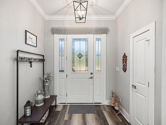 Beautiful custom-built home on a full 1-acre homesite with no HOA restrictions! Thoughtfully designed and exceptionally well constructed, this property offers the space, quality, and upgrades today's buyers are looking for--including a fiberglass pool, perfect for enjoying Florida living year-round.From the moment you walk in, you'll notice the 10' ceilings, crown molding, and fully trimmed windows that give the home a refined, custom feel. The spacious master suite features an en-suite bath with a soaking tub, walk-in shower, double vanity, and direct access to the laundry room through the master closet--an ideal layout for convenience and functionality. The kitchen is equally impressive with soft-close custom cabinetry, upgraded granite countertops, a large island, farmhouse lighting, and LED energy-efficient fixtures throughout. Additional features include a handy drop zone off the garage, an electric car charger, and a generator disconnect.