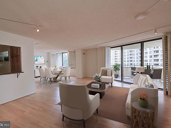 AMAZING OPEN FLOOR PLAN WITH AN ENTIRE 1845 SQ FEET OF SPACE! NEW REDUCED PRICE** WHAT AN AMAZING OPPORTUNITY! FULL SIZED WASHER/DRYER WITH A LARGE LAUNDRY ROOM**VERY HARD TO FIND IN THE PROMENADE**** Considering downsizing in Bethesda, but reluctant to forfeit your living space and storage? Apartment 901S is your perfect solution! This is a rarely available combined double apartment at the center of the ninth floor of the Promenade South building, with easy access to elevators. The apartment has magnificent newly refinished solid natural maple hardwood flooring and space abound. It can accommodate all of your furniture and artwork. Keep your extra belongings in three enormous closet/storerooms with built-in shelving. The unit has its own full-size washer and dryer. Its open floor plan provides endless opportunities to design the space as you need it. An updated kitchen opens to a dining area and gigantic living room. This connects with a separate den/office, or possible second bedroom and a full bathroom with shower/tub. The apartment has a stunning primary bedroom suite with a walk-in closet that is the size of a standard bedroom and a handicapped accessible bathroom with an extended marble-tiled shower. There are two large balconies and a sunny eastern exposure with panoramic vistas in all directions, including a direct view of the gorgeous Promenade swimming pool and gardens. Floor to ceiling windows feature custom, state-of-the-art blinds. Two convenient adjacent indoor parking spaces are included, located right near the elevators (#1031/1032) on the G1 level. The resort-style Promenade complex features Indoor & Outdoor Pools, a State-Of-The-Art Exercise and Fitness Center with a sauna, hot tub, indoor pool, Lockers & more. Retail Arcade features a popular Restaurant with outdoor seating adjacent to the pool, Beauty Salon, Dry Cleaners & Package Room, Travel Agency, and Convenience Store. Feel safe with a 24-Hour service Desk and a Security Gate at the Building Entrance. The complex features multiple meeting and study rooms, a huge party room and a resident lounge with a large screen TV on the modern arcade level. Other features include Self Car Wash Stations, Electric Car Charging Stations, Gardening opportunities, Barbecue and Picnic areas, seven Tennis Courts with lights for night play and a clubhouse. Pickleball Courts. and much more. The building hosts exercise classes, an open university, trivia night, multiple clubs, a book club, movie nights, holiday parties and other activities. The Promenade is located near I270, 495, downtown Bethesda, Pike & Rose, NIH/Walter Reed/Medical Center, and the Red Line Medical/NIH subway stop. The Red Line Metro Ride-On Bus stops at the Promenade's front door and goes directly to the Medical Center Metro Stop. Nearby Wildwood Shopping Center offers a CVS, Giant, Banks, Restaurants, Balducci's Gourmet Food Market, and more. Plenty of extra parking spaces for guests in the outdoor parking lots. Why not have it all? Great sun-filled open space, ample storage, stunning views and wonderful amenities at a convenient location.